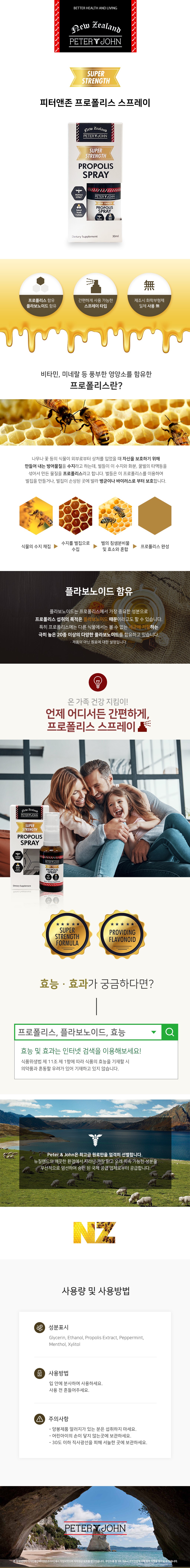 온가족 건강 간편하게 챙기세요 프로폴리스 스프레이 입 안에 깔끔하게 분사될 수 있게 신경써서 만들었습니다. 피터앤존 프로폴리스 스프레이 30ml 🐝 플라보노이드 함유