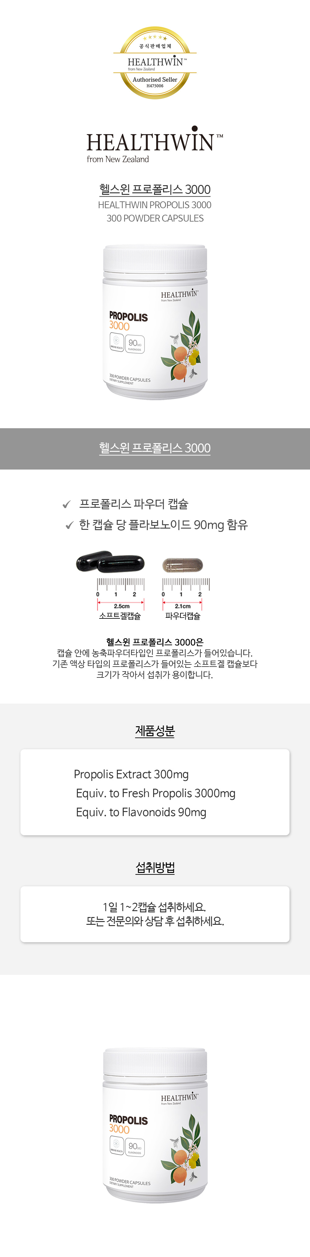 헬스윈 프로폴리스 분말 3000mg 300캡슐